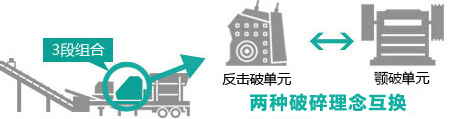 一種車身為8種機型通用,喂料單元互換系統(tǒng)、破碎單元互換系統(tǒng)和篩分單元互換系統(tǒng),只需再投資單機設(shè)備成本,短時間內(nèi),即可在同一車身上實現(xiàn)不同型號喂料單元、破碎單元和篩分單元互換系統(tǒng),整機各系統(tǒng)之間的匹配,適應(yīng)場合更廣泛,破碎功能更強,客戶的消費品得到較大體現(xiàn)。
