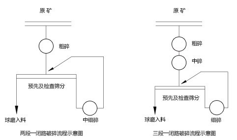 在具體破碎過程中,可以根據(jù)客戶對破碎比的不同要求,進行相應的破碎作業(yè)。根據(jù)不同的礦石性質(zhì)和使用破碎機的性能可以將總破碎比分成兩段或三段來實現(xiàn)。